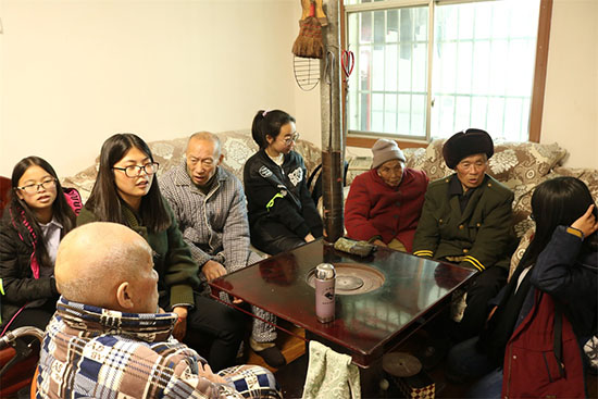 志愿者們分為清潔慰問組與炊事組兩組。清潔慰問組一部分打掃衛生,一部分陪老人們聊天,傾聽老人們講述自己的經歷以及與家人、孩子的故事,談話中老人們感慨現今生活的美好,教育志愿者們要學會珍惜。天氣晴朗,志愿者攙扶著老人在院里散步,還從室內搬出長凳,與老人共浴溫暖的陽光。期間,老人們與志愿者情切交流,氣氛十分融洽,幾名志愿者在一位老爺爺的帶領下,唱起了《東方紅》、《軍中綠花》等紅色革命歌曲。
