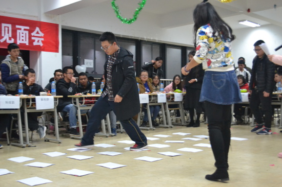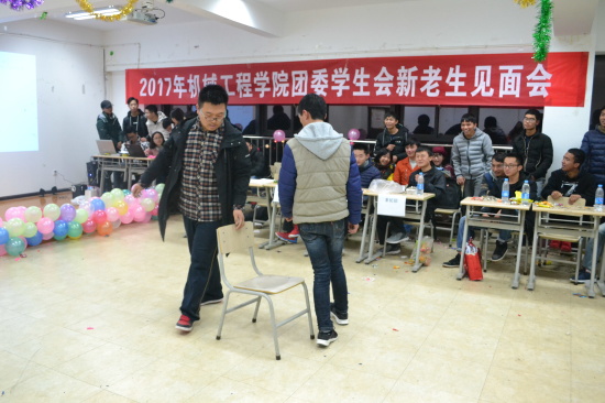 見面會加入娛樂游戲環節。“搶凳子”游戲時,新老成員一起隨著音樂繞著凳子行走,音樂停時,沒有坐到凳子的同學被淘汰,每輪減少兩張凳子直到僅有兩人搶一張凳子;“踩氣球”時大家你追我趕,一陣啪啪聲后,剩下一個男同學和女同學,男同學自己踩爆了氣球,贏得一片掌聲;“你來比劃我來猜”時,有的隊伍配合默契,100秒內猜出五六個,而有的則一個也猜不出來;玩“一塊五”時,女同學和男同學分別代表一塊錢和五角錢,主持人喊數字則大家抱在一起組成數字,不對的則淘汰;在“瓶子傳遞”過程中,音樂停止時瓶子在誰的手中就到教室中央進行才藝表演,其中組織部16級部長孫正偉給大家表演了妖嬈五連拍。