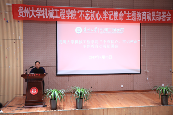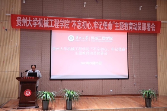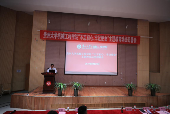 2019年9月25日,貴州大學機械工程學院黨委“不忘初心,牢記使命”主題教育部署會在機械樓圓形報告順利召開。校巡回指導小組四組組長許道云、成員李臣宇以及學院及現(xiàn)代制造重點實驗室在家處級領導干部、院黨委委員、各黨總支、黨支部委員、全體師生黨員參加了此次會議。會議由學院黨委院長李少波主持。