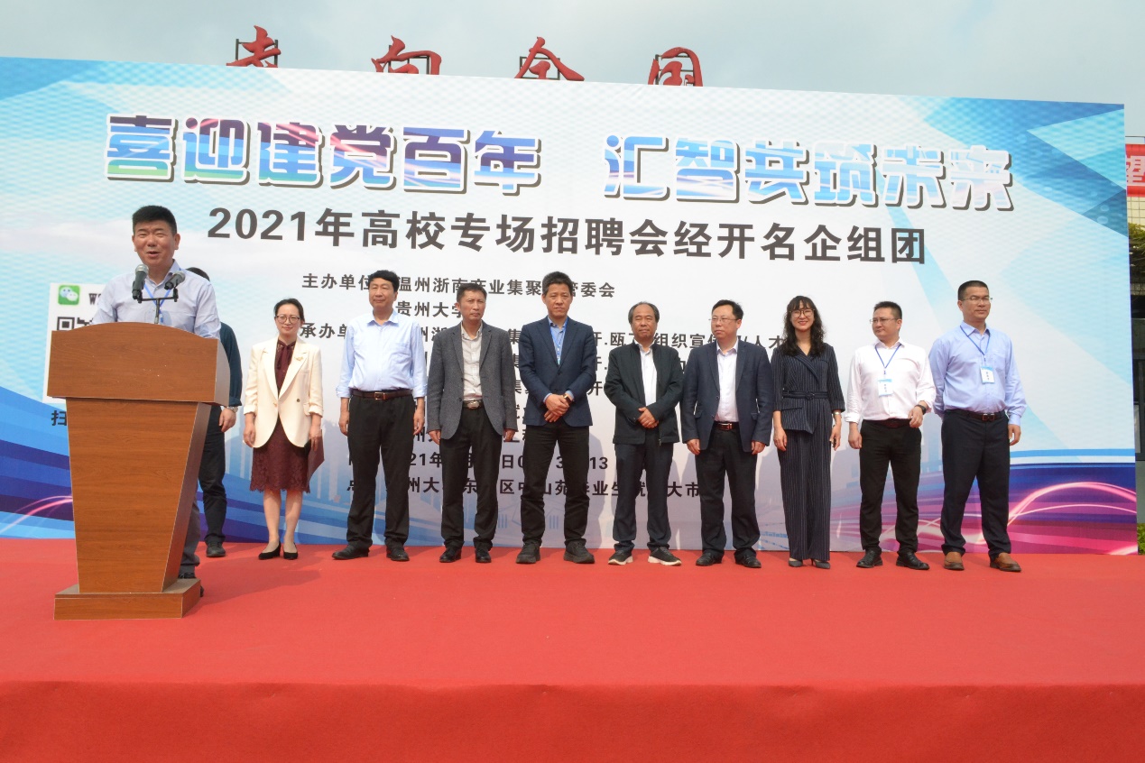 啟動儀式上,貴州大學招生就業(yè)處主要負責人王忠於致辭。他首先介紹了貴州大學及機械工程學院的相關情況,他指出,貴州大學是部省合建和“雙一流”高水平大學,機械工程學院擁有國家級和省級特色重點學科,具有現(xiàn)代制造技術(shù)教育部重點實驗室、全國高校實踐育人創(chuàng)新創(chuàng)業(yè)基地,是國家機械工程類培養(yǎng)了大量高層次人才。希望借助此次活動,浙南沿海先進裝備產(chǎn)業(yè)集聚區(qū)各企事業(yè)單位能在貴州大學招收到大量的優(yōu)秀人才。