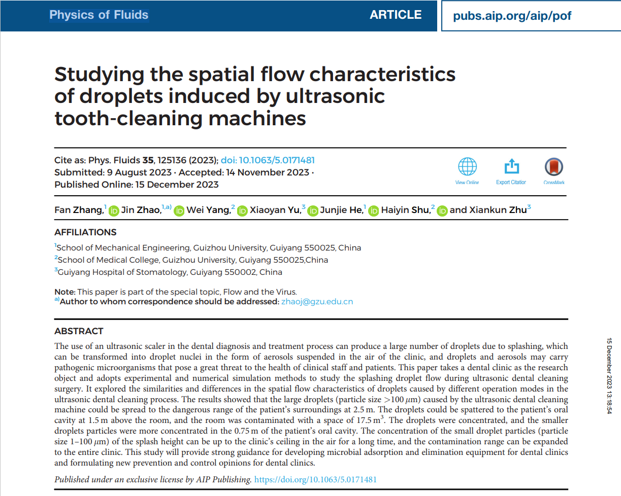 近十年來世界范圍內(nèi)接連遭受到多次新發(fā)、再發(fā)重大傳染病的威脅。牙科診所是特別容易受到呼吸道傳染疾病影響的醫(yī)療機(jī)構(gòu)之一,牙科診療過程中使用超聲波潔牙機(jī)因噴濺可產(chǎn)生大量飛沫,進(jìn)而轉(zhuǎn)化為飛沫核以氣溶膠的形式懸浮留存于診室空氣中,如果患者口腔內(nèi)攜帶血液傳播病毒或呼吸道傳播病毒,這些病毒會以飛沫作為載體在空氣中進(jìn)行傳播。貴州大學(xué)機(jī)械學(xué)院趙津教授、醫(yī)學(xué)院楊威教授和貴陽市口腔醫(yī)院余曉燕主任組成的聯(lián)合課題組,針對現(xiàn)階段潔牙手術(shù)過程中引發(fā)的飛沫流動機(jī)理尚不清楚,造成口腔診療飛沫吸附消殺設(shè)備的研制尚未完善,出現(xiàn)飛沫吸附不完全、噪音大、結(jié)構(gòu)設(shè)計(jì)不符合人機(jī)工程學(xué)影響醫(yī)生手術(shù)和患者感受等問題,開展研究。