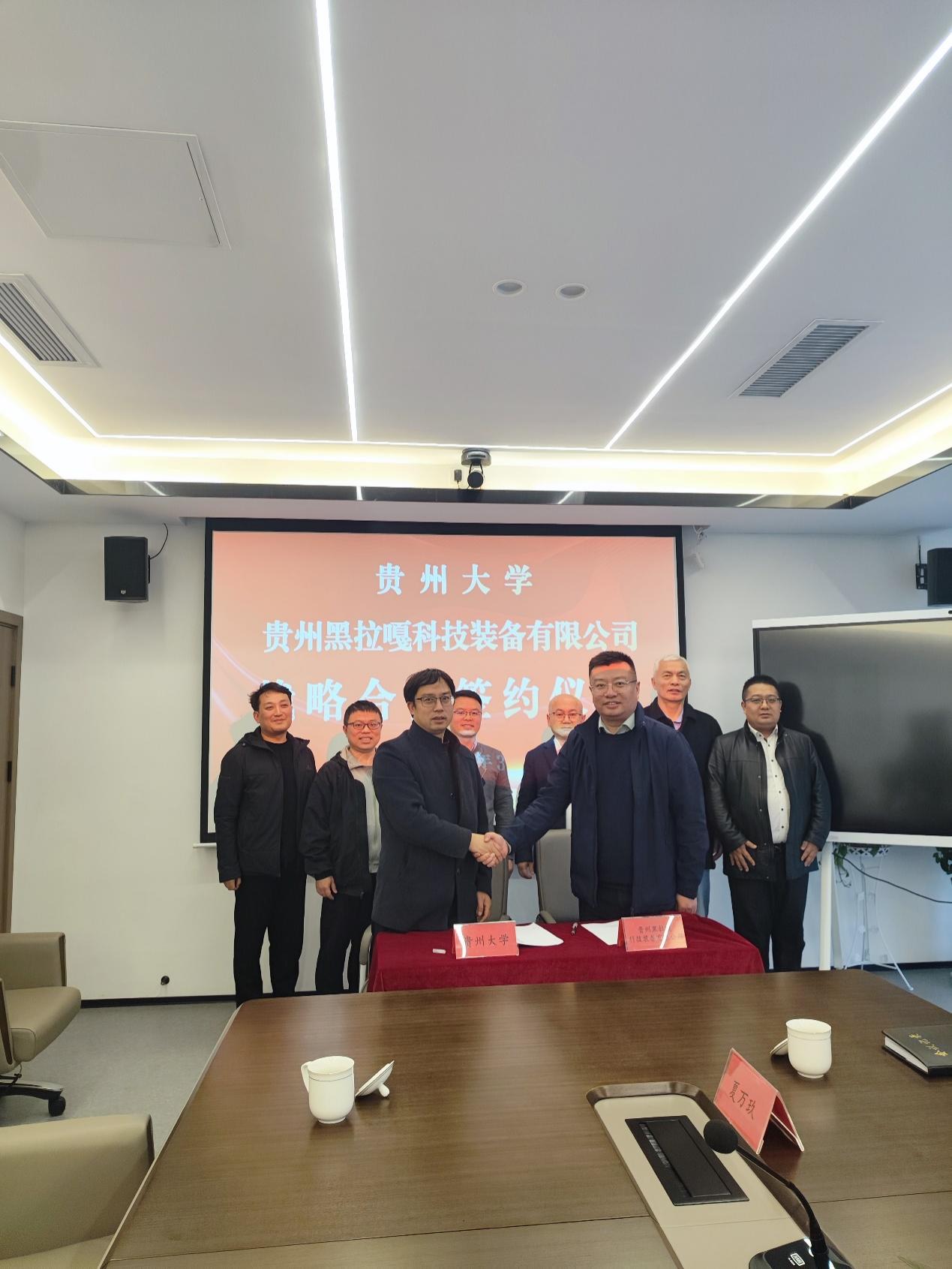 為促進高校與企業之間的高效交流,貴州大學機械工學院與貴州黑拉嘎科技裝備有限公司簽訂了戰略合作協議,雙方將充分利用貴州大學在煤礦開采及裝備制造領域的研究成果以及黑拉嘎公司在實踐方面的優勢,積極推動礦產資源的開發和利用,創新發展能礦裝備,為“富礦精開”賦能。