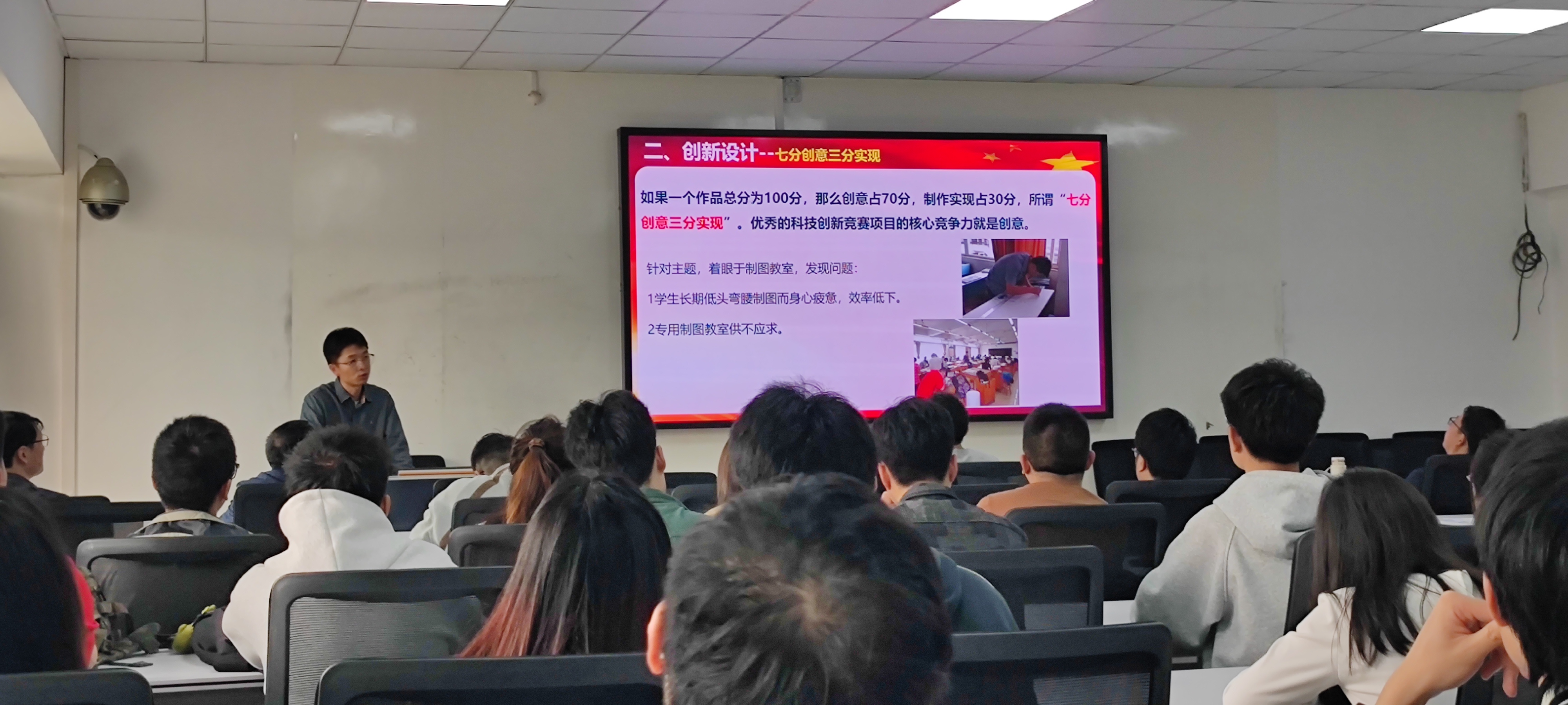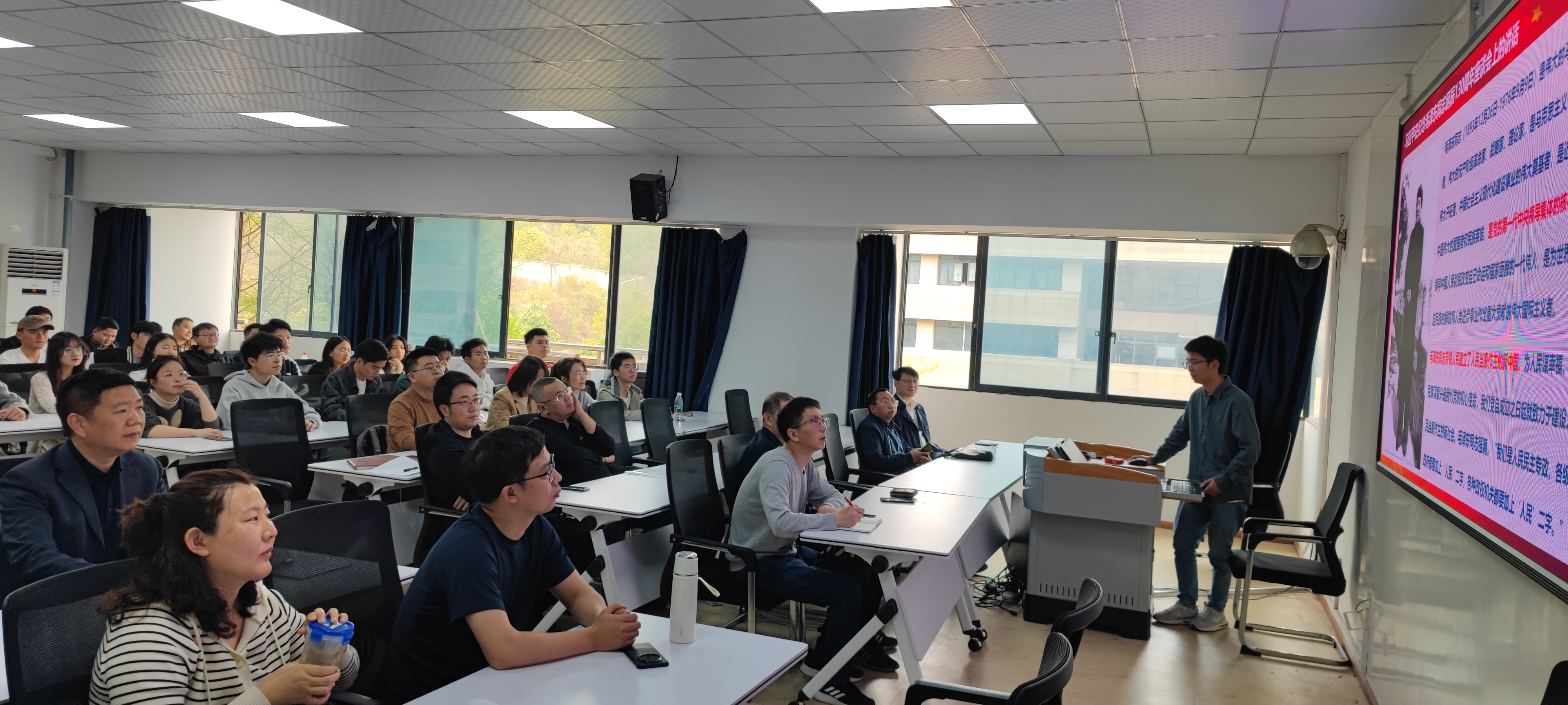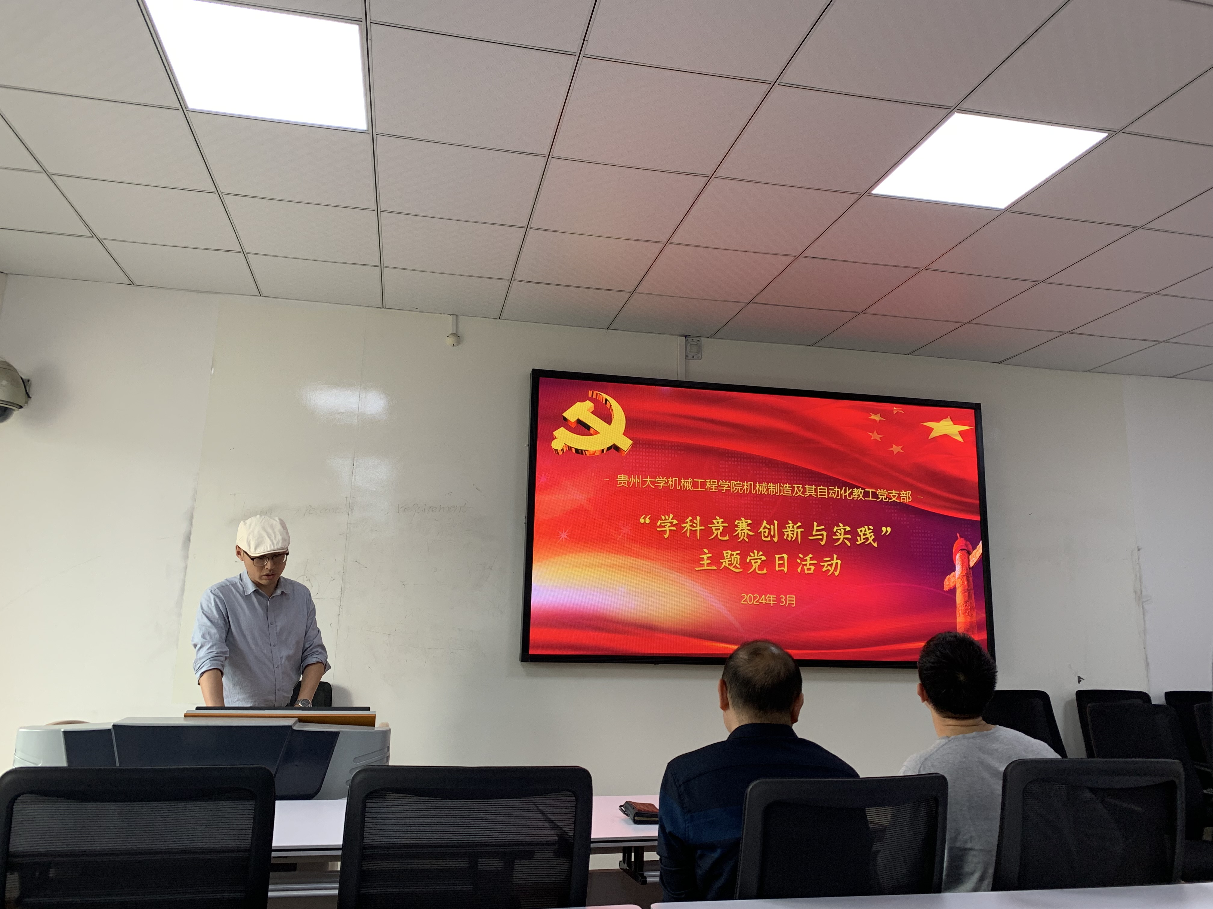 機械設計制造及其自動化教工黨支部副書記漆令飛帶領大家開展第一議題的學習,學習了習近平總書記關于毛主席130周年誕辰的講話,重點解讀了2024兩會精神學習。緊接著,他結合自身學科競賽及指導的豐富經驗,給各位教工黨員和學生黨員做了關于學科競賽創新與實踐經驗分享。