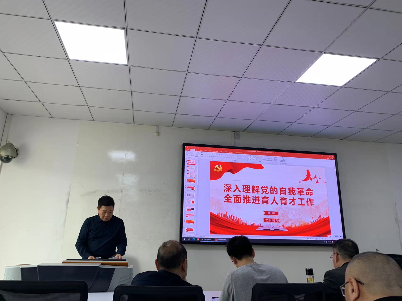 學院黨委書記滕召華給各位黨員以“深入理解黨的自我革命,全面推進育人育才工作”為題開展黨課。他以中國共產黨通過自我革命跳出了治亂興衰歷史周期率為例,強調在不同時期不斷進行自我革命的價值意義和現實意義,隨后以“為什么要自我革命?為什么能自我革命?如何推進自我革命?”為提綱帶領大家深入學習。他強調,育人育才事業是黨的事業的重要組成部分,關系著國家未來的發展、民族的振興。為更好的落實立德樹人根本任務,他結合高校工作實際,從思想政治、師資隊伍、學科建設、內部管理、合作聯動、改革創新等方面與大家進行了探討。