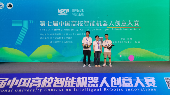 賽場風云,蓄勢待發。8月21日—22日,由中國高校智能機器人大賽組委會主辦的第七屆中國高校智能機器人創意大賽國賽如約而至。本屆大賽共有27個?。ㄗ灾螀^、直轄市),585所高校參與,7000余支隊伍報名參加。經各省省賽和全國選拔賽,1347支隊伍進入國賽,攜上千件作品于浙江省余姚市中塑國際會展中心同臺競技。在該競技舞臺上,我校同學在郭蕊老師和劉勇老師的指導下獲得國家二等獎。