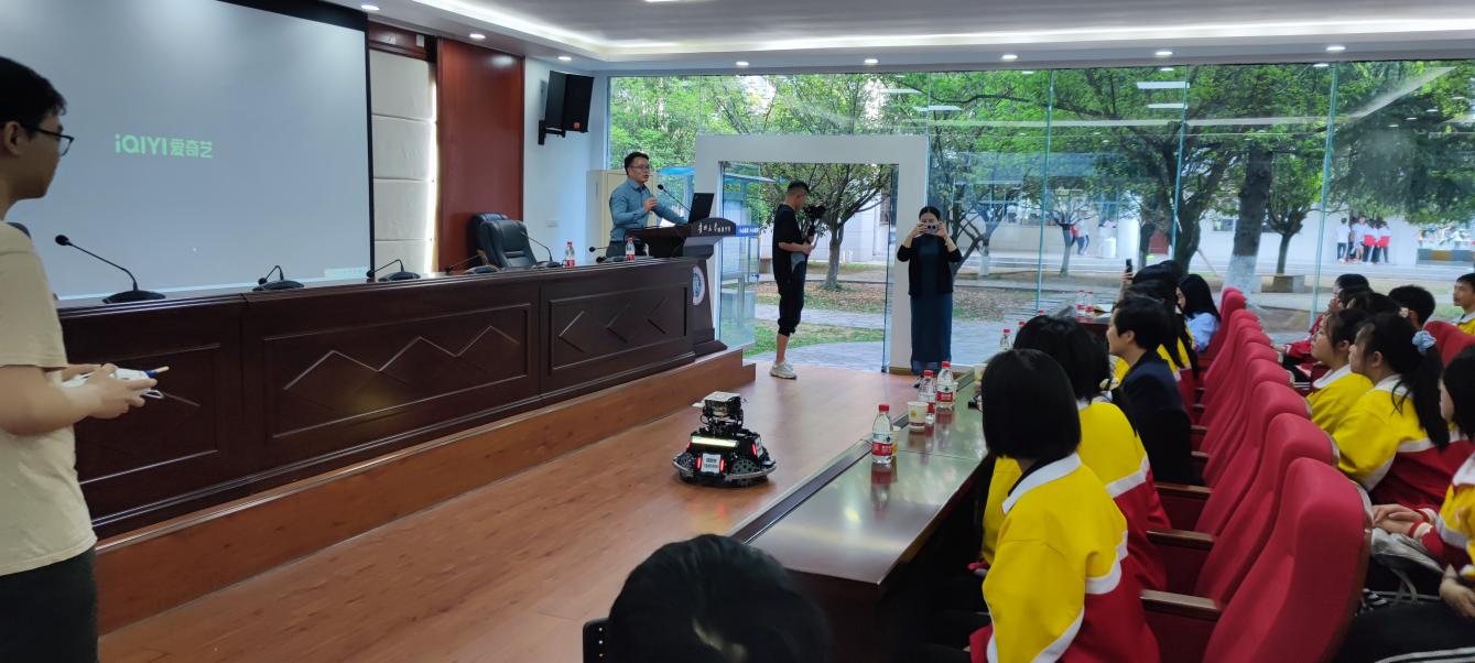 為充分發揮學者影響力,普及推動科學知識,我院副院長唐正強教授于4月17日走進貴州大學附屬中學為師生開展主題為“智能時代,智創未來”的科普講座。他通過生動的視頻演示和PPT配合講解,深入淺出地介紹了人工智能、智能制造等前沿科技的發展趨勢及其對未來的影響和我院教師在智能技術領域的探索與實踐,并向同學們展示了我院學生制作的機器人,激發學生關注科技熱情。