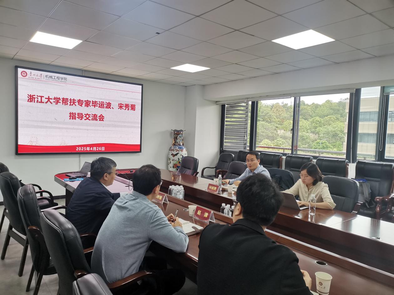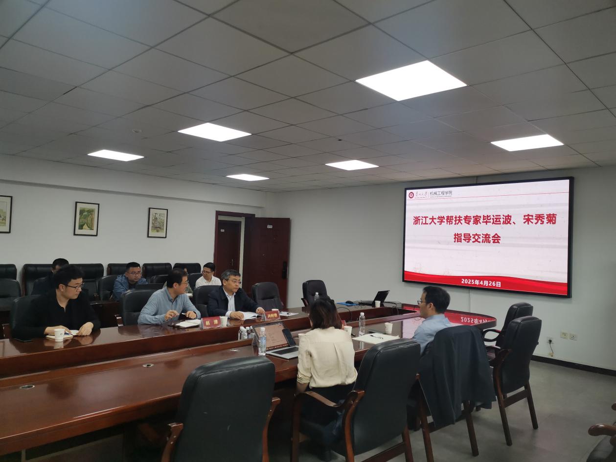 為深入貫徹落實省委省政府關于深化東西部協作和新時代高校對口幫扶工作的重要指示精神,2025年4月26日下午,浙江大學機械工程學院對口幫扶專家畢運波教授、宋秀菊研究員一行赴貴州大學機械工程學院開展指導交流。活動由貴州大學機械工程學院黨委書記趙津主持,浙江大學幫扶專家組組長、國家級人才稱號獲得者馮毅雄及學院青年教師代表吳家柱、汪希奎、杜昊、漆令飛、陳躍威等10余人參與座談交流。