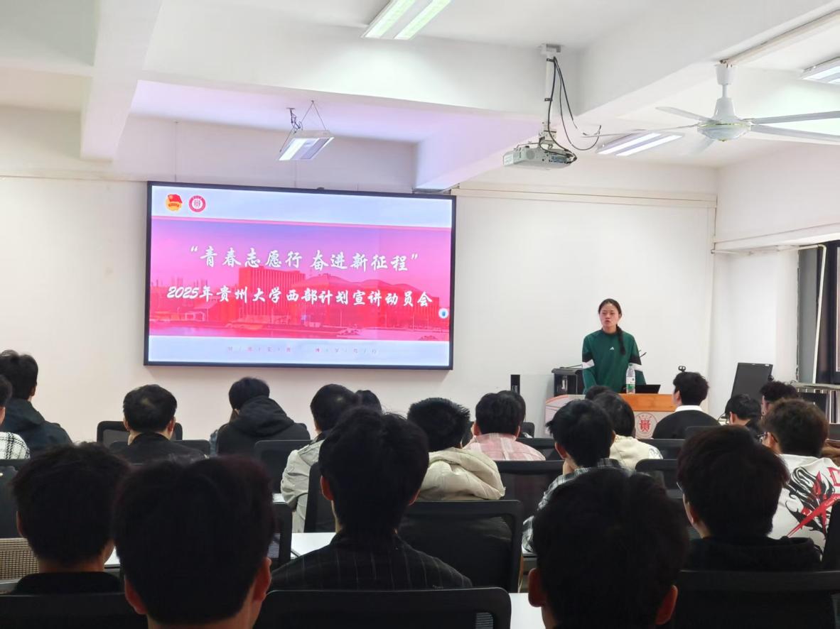 為深入貫徹國(guó)家“大學(xué)生志愿服務(wù)西部計(jì)劃”政策號(hào)召,引導(dǎo)青年學(xué)子投身西部基層建設(shè),學(xué)院團(tuán)委于4月29日在327室舉辦了2025年大學(xué)生志愿服務(wù)西部計(jì)劃專題宣講會(huì)。通過(guò)政策解讀、經(jīng)驗(yàn)分享與互動(dòng)答疑相結(jié)合的形式,為學(xué)生深度解讀西部計(jì)劃志愿服務(wù)政策。