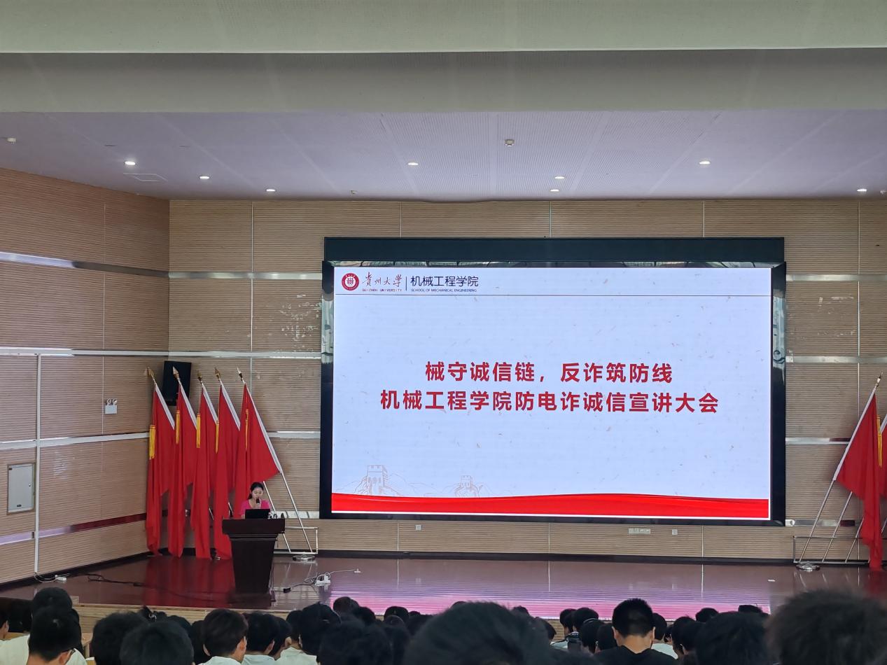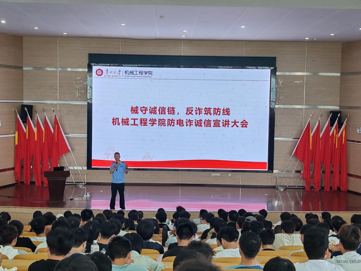 為提升機(jī)械學(xué)子的網(wǎng)絡(luò)安全意識(shí),強(qiáng)化誠信觀念,營造安全穩(wěn)定的校園環(huán)境,2025年6月12日中午,機(jī)械工程學(xué)院邀請(qǐng)松山派出所副所長趙普林警官開展“械守誠信鏈,反詐筑防線”宣講大會(huì),大會(huì)由學(xué)生科輔導(dǎo)員楊朵主持,學(xué)生科副科長王嘉斌及全體寢室長、健康委員、生活委員、安全委員參會(huì)。