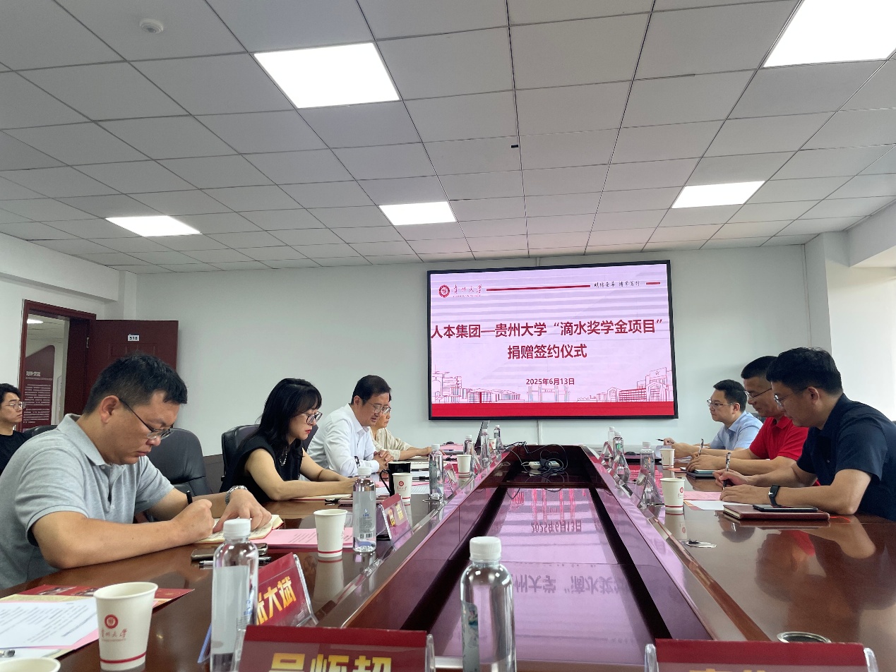 為進一步加強項目合作,雙方就《貴州大學人本滴水獎學金評定實施細則》進行了深入討論,在與會人員的共同見證下,雙方代表簽訂了捐贈協議。