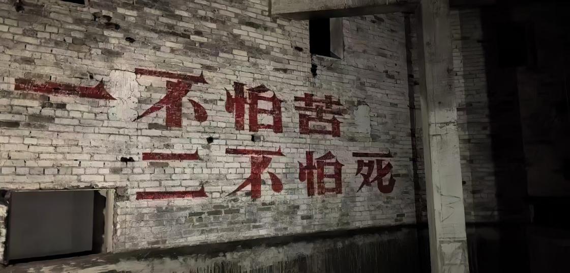 而今處于新時代的我們,已不見先輩們洞中燈火下揮汗如雨、艱辛勞作的身影,但洞壁上一行行斑駁卻遒勁的紅色標語,卻依舊如炬火般灼亮,似號角般回響,在歲月深處默默訴說著那段滾燙的過往。