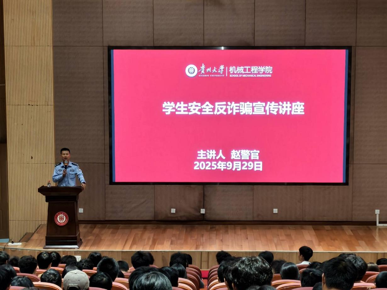 為提升機械學子的網絡安全意識,提升反詐能力,營造安全穩定的校園環境,2025年9月29日晚,機械工程學院邀請松山派出所副所長趙普林警官開展新生反詐宣講大會,大會由學生科輔導員周士力主持,2025級全體新生參會。