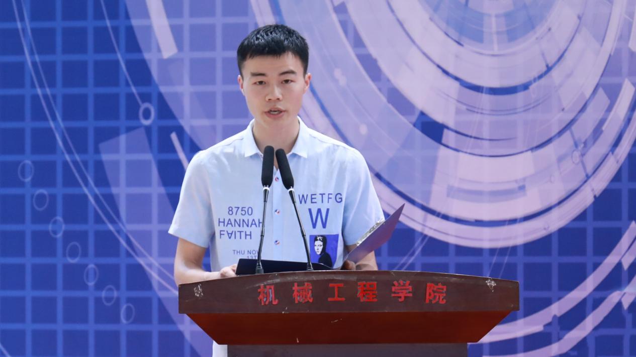 貴州大學機械工程學院機械設計制造及其自動化專業羅一波同學代表參賽隊伍發言。